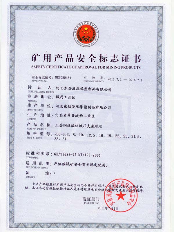 • 鋼絲編織管采用國(guó)際標(biāo)準(zhǔn)認(rèn)可認(rèn)可證書